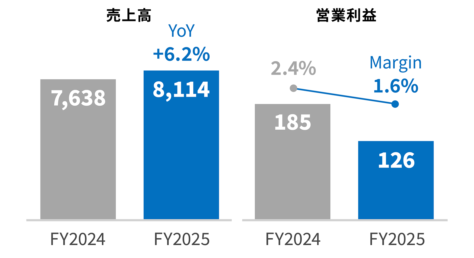 売上高は、既存請負業務において価格改定交渉が計画を上回って進捗したこと等により、前年同期比3.4%増55,208百万円となりました。営業利益は、既存請負業務における価格改定が計画を上回って進捗したものの、社員の人材育成投資及び社員満足の向上を目的とした処遇改善を戦略的に強化した結果、前年同期比8.4%減の3,092百万円となりました。