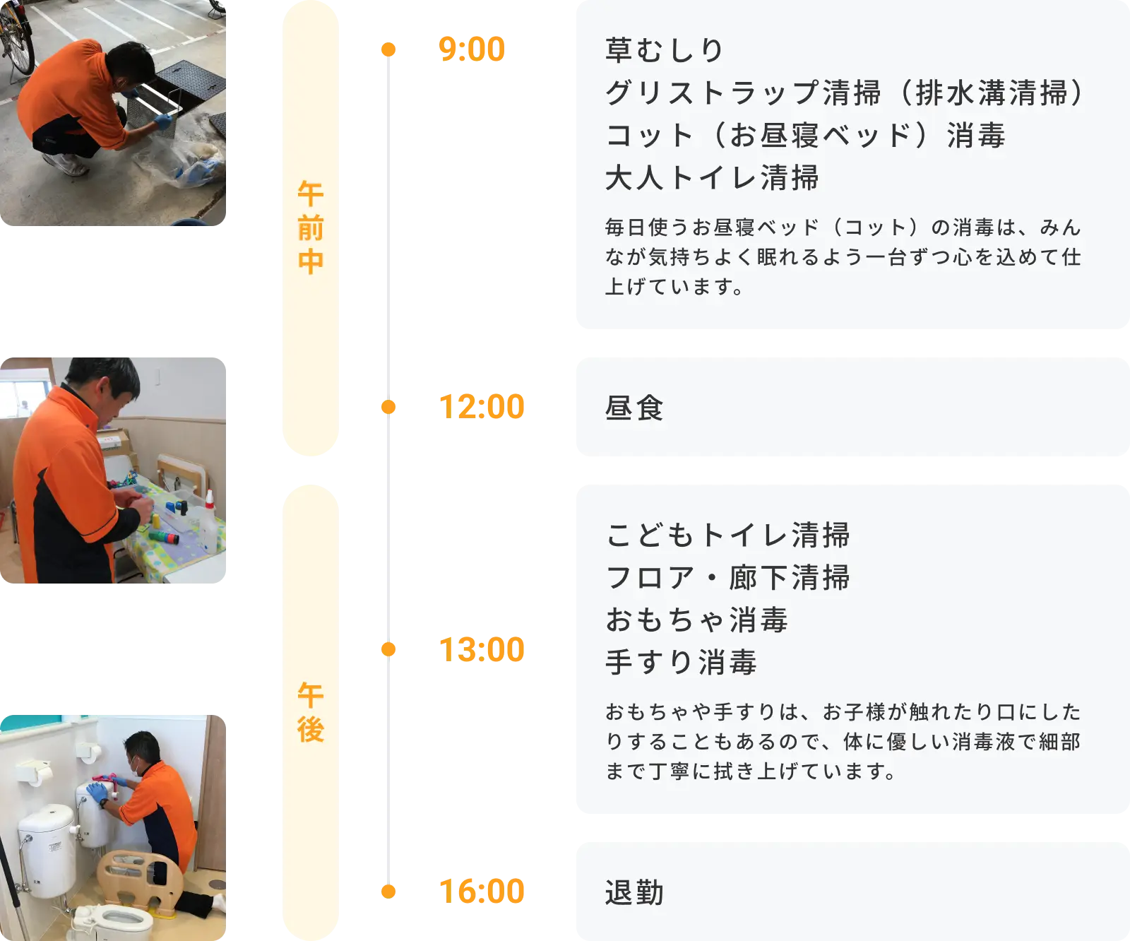 オフィス事務サポート 介護施設清掃・家事援助 保育園清掃・消毒業務 病院事務補助・消毒業務 |
